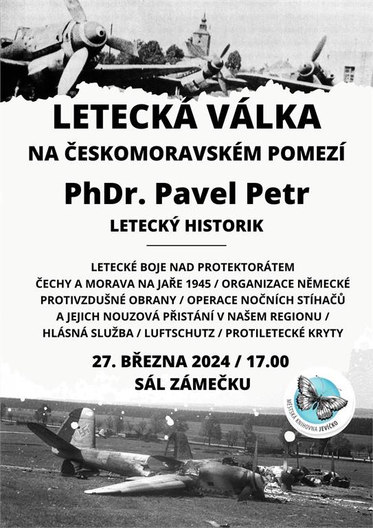 Srdečně zveme všechny zájemce o historii letectví na přednášku Pavla Petra Letecká válka na českomoravském pomezí na jaře 1945. V přednášce badatel přiblíží organizaci německé protivzdušné obrany v letech druhé světové války, vysvětlí, jak se vzdušný prostor nad Protektorátem Čechy a Morava v průběhu posledních válečných měsíců proměnil z klidného zázemí pro výcvik německých letců v bojovou zónu, popíše operace nočních stíhačů a jejich nouzová přistání v našem regionu - území od Litomyšle po Vranovou Lhotu,