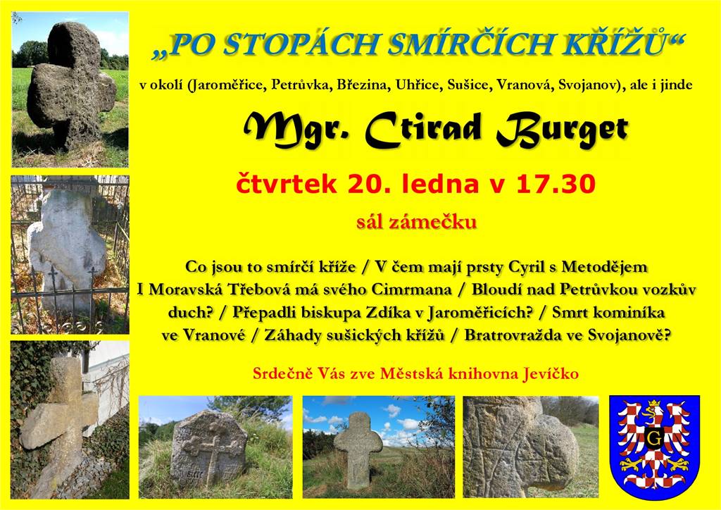 Po stopách smírčích křížů vyrazíme s Mgr. Ctiradem Burgetem ve čtvrtek 20. ledna 2022. Dozvíme se historii smírčích křížů, kde se s nimi setkáme, krátce smírčí právo, cyrilometodějská teorie… Uvidíme 11 objektů v okolí a zajímavosti, které se k nim váží.